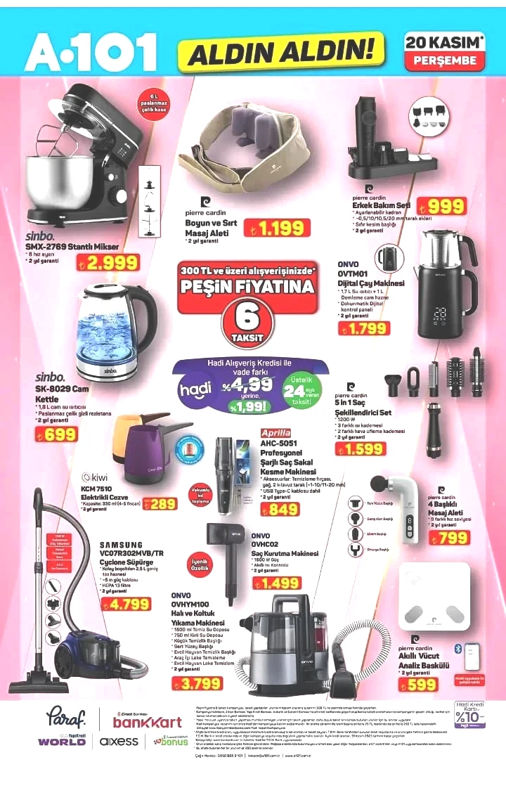 A101’in her hafta beklendiği gibi bu perşembe gününe özel çeşitli mutfak ürünleri, elektrikli küçük ev aletleri ve ev tekstili seçenekleri katalogda yer alıyor. Sinbo stantlı mikser, Pierre Cardin masaj aleti, seramik tencere ve tava modelleri, hem fiyat hem de kalite açısından avantaj sağlayan ürünler arasında bulunuyor.