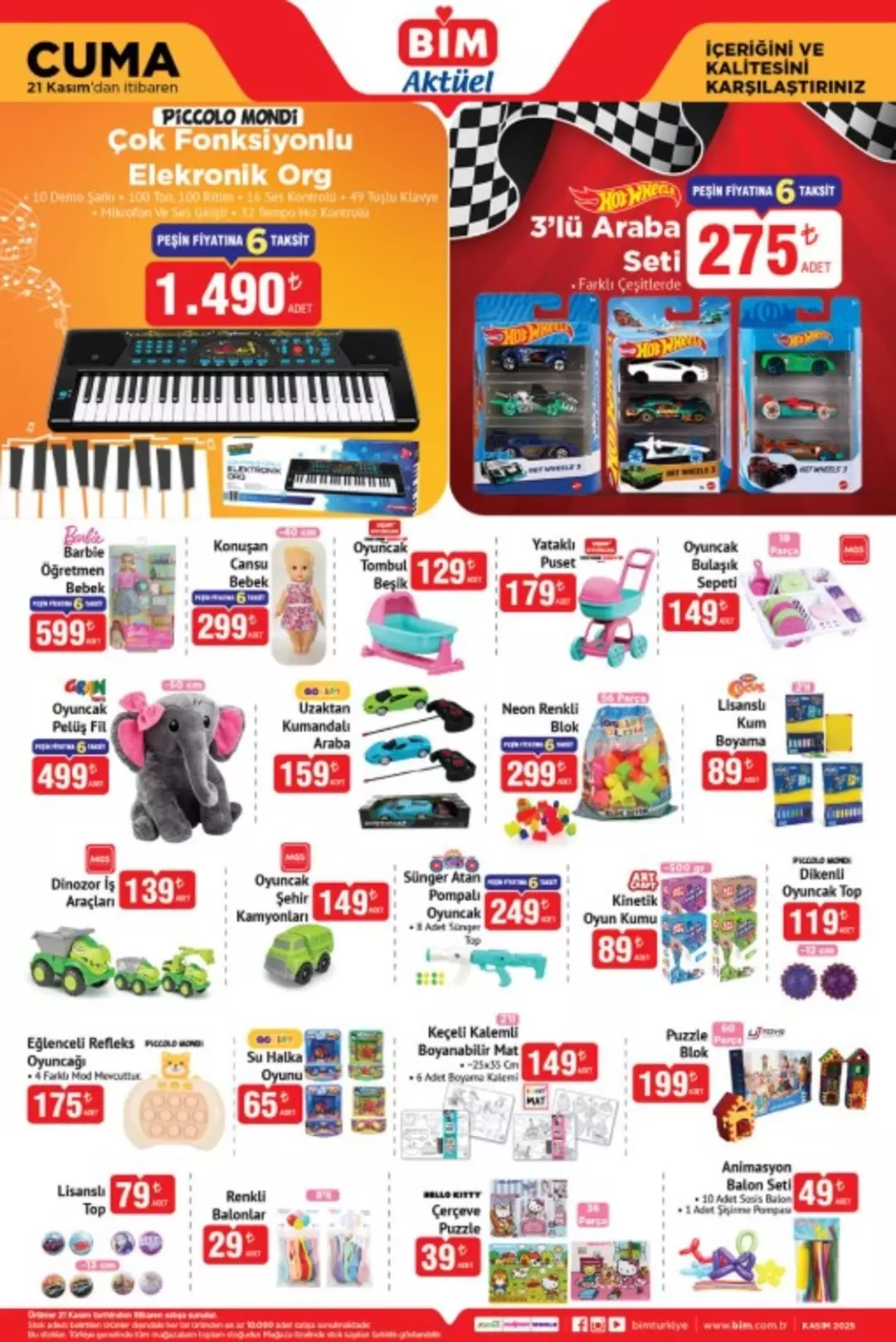 Yeni yıl öncesi oyuncak kategorisinde geniş bir ürün yelpazesi sunuluyor. Piccolo Mondi elektronik org, Hot Wheels 3’lü araba seti, Barbie öğretmen bebek, uzaktan kumandalı araçlar, peluş oyuncaklar ve kum oyun setleri çocuklar için ideal seçenekler arasında. Aileler, uygun fiyatlı oyuncaklarla hem hediye hazırlığı yapabilecek hem de çocuklarının ihtiyaçlarını karşılayabilecek.
