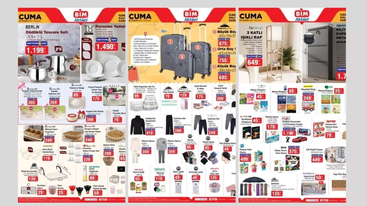 BİM’in 21 Kasım Cuma günü geçerli olacak aktüel ürün kataloğu yayınlandı. Bu hafta mağazalara gelecek fırsatlar arasında ısıtıcı modelleri, televizyonlar, mutfak ürünleri, oyuncak çeşitleri, kişisel bakım ürünleri ve ev-yaşam kategorisinde dikkat çeken avantajlı seçenekler yer alıyor. Kasım ayına özel indirimlerin yoğunlaştığı haftada, hem günlük ihtiyaçlara hem de kış döneminde artan ısınma giderlerine yönelik ürünler raflarda yerini alacak.