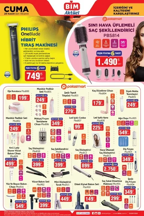 BİM’in en çok takip edilen kataloglarından biri olan “Aldın Aldın” 28 Kasım Cuma günü yeniden müşterilerle buluşuyor. Bu katalogda saç şekillendirici, tıraş makinesi, ev tekstili ürünleri, alezl, teknolojik küçük ev aletleri ve özel seri elektronik ürünler öne çıkıyor. Kasım ayının son haftasına denk gelen bu kampanya, yıl sonu indirim beklentisi olan tüketiciler için önemli fırsatlar sunuyor.
